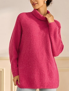 Damskie Sweter Golf Prążkowany Robić na drutach Mieszanka wełny Opuść ramię Rękaw nietoperz Jesień / Zima Casual Dzianina Długi rękaw Jednokolorowe Czerwona róża S M L