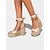 damskie beżowe sandały na koturnie z koralikowymi paskami – eleganckie buty wieczorowe na wakacyjne kolacje