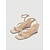 damskie beżowe sandały espadryle na koturnie z paskiem przy kostce - eleganckie buty wieczorowe na wakacyjne kolacje