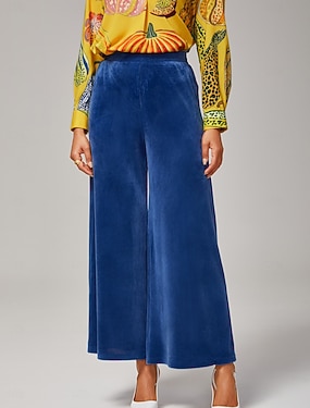 Spodnie damskie z szerokimi nogawkami w kolorze niebieskim, satynowe, z gumką w pasie, plisowane, luźne, eleganckie, na wiosnę, lato, jesień