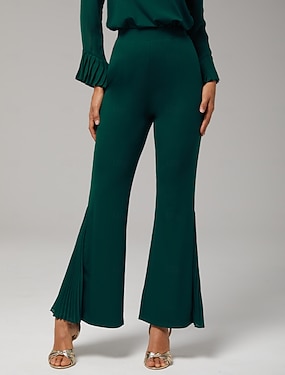 zielone spodnie dzwony z nadrukiem geometrycznym 3D, bardzo elastyczne