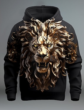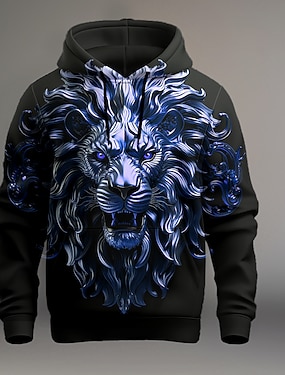 Męskie Graficzny Lew Teksturowany Bluza z Kapturem Z kapturem Bluzy Moda Codzienny Długi rękaw Kaptur Urlop Wyjściowe Streetwear Festiwal Czarny Czerwony Niebieski Zielony Nadruk Przednia kieszeń