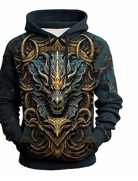 Męskie Graficzny Zwierzę Smok Bluza z Kapturem Z kapturem Bluzy Codzienny Podstawowy Vintage Retro Długi rękaw Kaptur Urlop Sporty na świeżym powietrzu Święto Streetwear Czarny Żółty Niebieski Szary