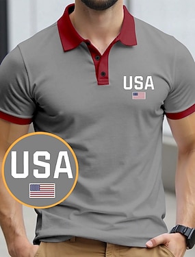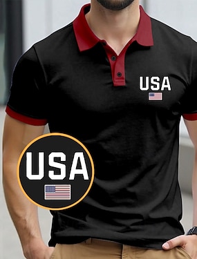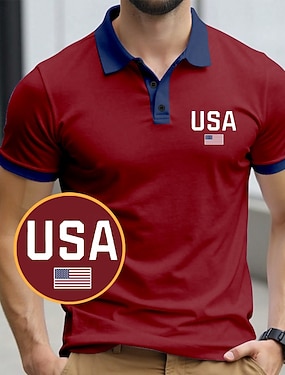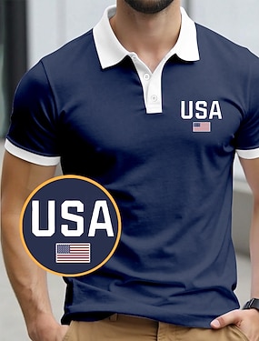 4 lipca 2026 250. Męskie Amerykańska flaga USA Wojskowy Gra polo Krótki rękaw Koszulki polo Koszule z kołnierzykiem Codzienny Na zewnątrz Szkoła Dzienne zużycie Druk 3D Lato Niebieski Brązowy