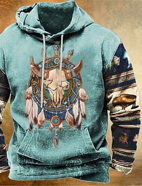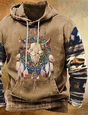 Męskie Renifer Plemienny Wzory graficzne Bluza z Kapturem Z kapturem Bluzy Codzienny Etniczne Długi rękaw Kaptur Święto Wyjściowe Streetwear Niebieski Błękit nieba Khaki Szary Nadruk Wiosna i jesień