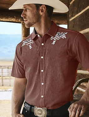 Męskie Kowboj Koszula Koszula westernowa Kowbojska koszula Długi rękaw Zabytkowe styl zachodni Na zewnątrz Ulica Codzienne Jesień i zima Wieczorne Guziki Nadruk Brązowy Khaki
