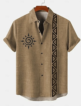 Męskie Etnické Koszula Zapinana na guziki koszula Koszula Henley Długi rękaw Codzienny Plemienny Urlop Codzienny Święto Lato Wiosna Jesień Bez kołnierza W serek Nadruk Beżowy