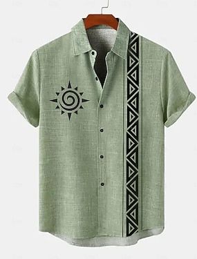 Męskie Słońce Aztek Podkoszulek Koszula Henley Krótki rękaw Druk 3D Designerskie Etniczne Codzienny Lato Niebieski Zielony Khaki W serek Henley Koszulka Henley