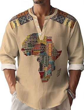Męskie Etnické Koszula Zapinana na guziki koszula Koszula Henley Długi rękaw Codzienny Plemienny Codzienny Urlop Lato Wiosna Jesień Bez kołnierza W serek Nadruk Khaki