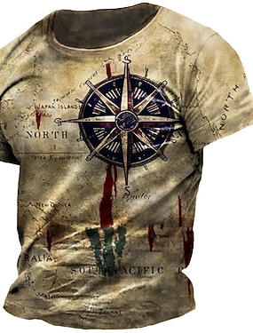 Męskie Graficzny Motyw morski Kompas Podkoszulek Koszulki przetarta koszulka Krótki rękaw Podkoszulek Druk 3D Półgolf Koszula Zabytkowe Moda Designerskie Na zewnątrz Codzienny Sport Khaki Wiosna i