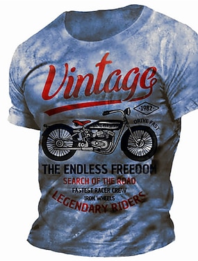 Męskie Graficzny Motosiklet Podkoszulek przetarta koszulka Krótki rękaw Podkoszulek Druk 3D Półgolf Koszula Zabytkowe Moda Designerskie Na zewnątrz Codzienny Sport Niebieski Brązowy Zielony Wiosna i