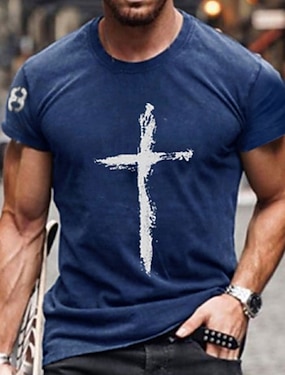 Męska koszulka T-shirt z grafiką krzyża Biblia Krótki rękaw T-shirt 3D Print Koszulka z okrągłym dekoltem Vintage Mody Projektanta Casual Codzienne Ubrania na zewnątrz Czarne Wiosna i Lato