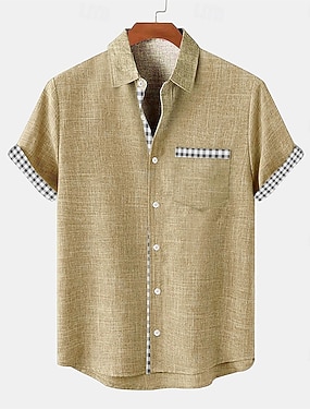 Męskie Koszula lniana koszula Koszula plażowa Koszula hawajska Drzewo kokosowe Urlop Święto Rumiany róż Niebieski Khaki Krótkie rękawy Wieczorne Lato Odzież