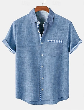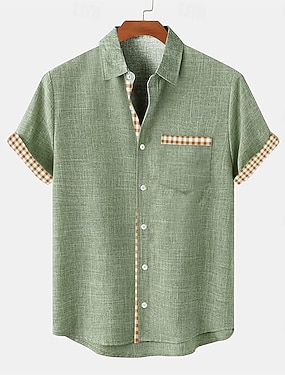 Męskie Geometryczny Krata / pled Koszula Zapinana na guziki koszula Krótki rękaw Moda na co dzień Na zewnątrz Urlop Streetwear Lato Wiosna Wieczorne Druk 3D koszule z kołnierzykiem Czarny Rumiany r