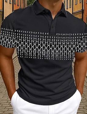 Męskie Prążki Koszulki polo Koszula golfowa Krótki rękaw Koszulki polo Koszule z kołnierzykiem Biznesowy swobodny Odzież robocza Ubrania formalne Ubrania festiwalowe Druk 3D Guziki Wiosna i lato