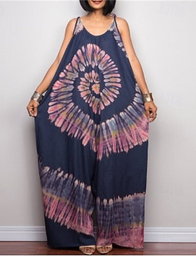 Damskie Normalny Kombinezon Codzienny Wzór tie-dye Bez rękawów Spodnie szerokie nogawki Półgolf Kieszeń Nadruk Ulica Codzienny Regularny Czarny Rumiany róż Granatowy Lato