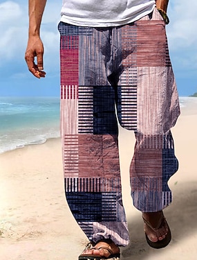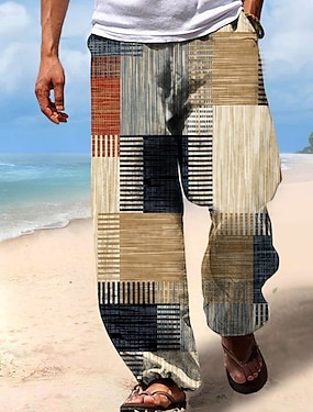 Męskie Koszula lniana koszula koszule w stylu retro Koszula w stylu vintage Koszula etniczna Kratka Na zewnątrz Dom Niebieski Khaki Szary Krótki rękaw Wieczorne Lato Odzież
