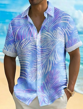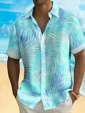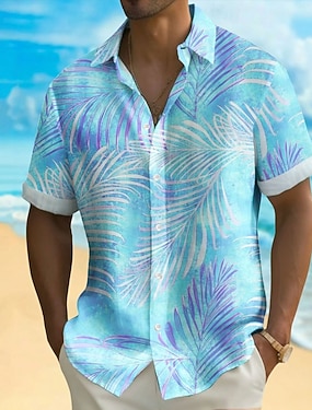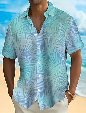 Męskie Drzewo palmowe Kolor gradientu Rośliny Tropikalne Koszula hawajska Zapinana na guziki koszula Koszula Aloha Krótki rękaw Hawajskie Ośrodek wczasowy Urlop Święto Stroje plażowe Lato Wiosna