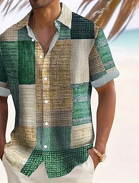 Męskie Geometryczny Kolorowy blok Niejednolita całość Koszula Letnia koszula Zapinana na guziki koszula Krótki rękaw Moda na co dzień Na zewnątrz Urlop Na co dzień Lato Wiosna Wieczorne Druk 3D