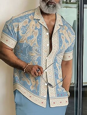 Męskie W Tureckie Wzory Kwiatowy wzór Etnické Koszula Zapinana na guziki koszula Koszula obozowa Krótki rękaw Vintage Retro Streetwear Urlop Lato Wiosna Kubański kołnierz Druk 3D Niebieski Rumiany