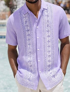 Męskie Kwiatowy wzór Etnické Kwiaty Koszula Koszula Guayabera Zapinana na guziki koszula Krótki rękaw Vintage Retro Codzienne wakacje na plaży Lato Wieczorne Druk 3D Jedna kieszeń z przodu Koszula z
