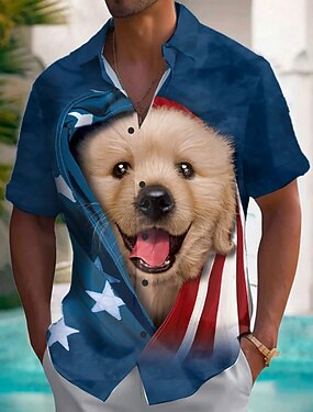 Dzień Niepodległości Męskie Psy 4 lipca 250. rocznica powstania Stanów Zjednoczonych Flaga USA Koszula Zapinana na guziki koszula Koszula projektanta Krótki rękaw Vintage Retro Codzienny Urlop Lato