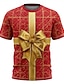 Koszulka z nadrukiem 3D w pudełku prezentowym dla mężczyzn, zabawny kostium na prezent w kolorze czerwonym i złotym z kokardą, strój na imprezę świąteczną na brzydki dzień swetra
