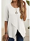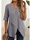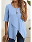 Damskie Koszulka z lnu bawełnianego Koszulka Asymetryczny dół Jednokolorowe Elegancja Moda Codzienny Rękaw 1/2 Półgolf Długie topy Codzienny Wyjściowe Niebieski Biały Szary Lato Wiosna