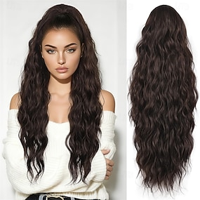 Przedłużanie kucyka, 26-calowe przedłużki do kucyka ze ściągaczem, długie, kręcone, falowane kucyki, syntetyczne przedłużki do włosów, spinki do włosów w kucyk dla kobiet, ciemny brąz czekoladowy z