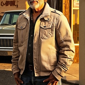Męskie Lekka kurtka Kurtka Trucker Kurtka do zadań specjalnych Formalny Dom Przenośny Kieszeń Wiosna Jesień Zima Jednokolorowe Aktywny Zabytkowe Wieczorne Regularny Czarny Zielony Khaki Kurtki