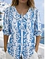 Damskie Bluzka Kwiaty Graficzny Zabytkowe Elegancki Rękaw 3/4 Kołnierzyk Piotruś Pan Zwykłe topy Codzienny Praca Święto Niebieski Lato Wiosna
