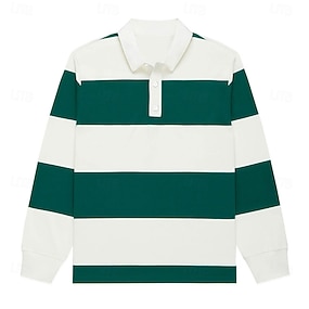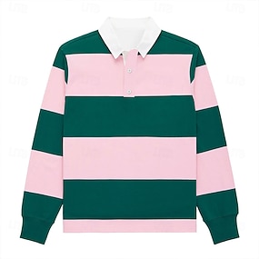 Męskie Poziome paski Polo do rugby Długi rękaw Koszulki polo Koszule z kołnierzykiem Odzież sportowa Codzienny Na zewnątrz Szkoła Athleisure Druk 3D Wiosna Jesień Niebieski Jasnozielony Fioletowy