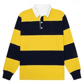 Męskie Poziome paski Polo do rugby Długi rękaw Koszulki polo Koszule z kołnierzykiem Odzież sportowa Codzienny Szkoła Na zewnątrz Athleisure Druk 3D Wiosna Jesień Zima Żółty Pomarańczowy Zielony
