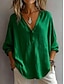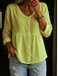 Damskie Koszule bawełniane lniane Jednokolorowe Podstawowy Codzienny Rękaw 3/4 W serek Długie topy Codzienny Czarny Biały Żółty Zieleń wojskowa Granatowy Lato Wiosna