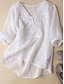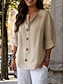 Damskie Koszula Koszule bawełniane lniane Zapiąć Bluzka Guziki Jednokolorowe Podstawowy Codzienny Rękaw 3/4 W serek Zwykłe topy Codzienny Czarny Biały Czerwony Khaki Lato