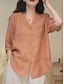 Damskie Koszule bawełniane lniane Kieszeń Guziki Równina Podstawowy Nowoczesny Rękaw 3/4 Kołnierzyk koszuli Zwykłe topy Codzienny Biały Żółty Rumiany róż Błękit nieba Lato Wiosna Jesień