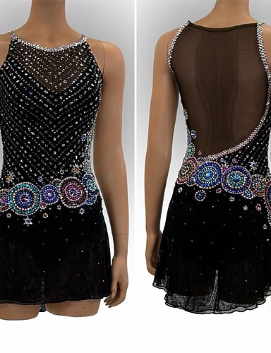 Sukienka łyżwiarska Damskie Bruslení Sukienka Czarny Niejednolita całość Otwórz Wróć Elastyczny Szkolenie Zawody Odzież łyżwiarska Klasyczny Kryształ / Kryształ górski Bez rękawów Łyżwiarstwo