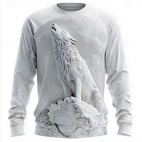 Męskie Wzór 3D Wilk Podkoszulek Długi rękaw Podkoszulek Druk 3D Półgolf Koszula Moda Przesadny 3D Codzienny Ulica Czarny Khaki Szary Lato Wiosna Jesień Odzież S M L XL XXL XXXL