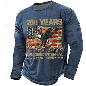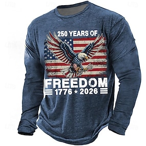4 lipca 2026 250. rocznica Dnia Pamięci Męski 3D Print T-shirt z flagą USA z okrągłym dekoltem z długim rękawem codzienny