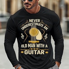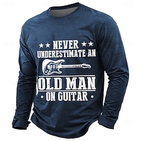 Męskie Gitara Zabawny slang Podkoszulek Długi rękaw Podkoszulek Druk 3D Półgolf Koszula Moda Codzienny Podstawowy Codzienny Ulica Niebieski Czarny Zielony Lato Wiosna Odzież S M L XL XXL XXXL