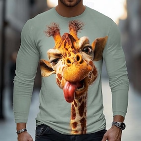 Męskie Zwierzę Śmieszne Podkoszulek Długi rękaw Podkoszulek Druk 3D Półgolf Koszula Moda Podstawowy Codzienny Ulica Niebieski Błękit jeziora Zielony Lato Wiosna Odzież S M L XL XXL XXXL