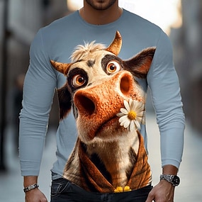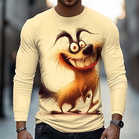 Męskie Zwierzę Śmieszne Podkoszulek Długi rękaw Podkoszulek Druk 3D Półgolf Koszula Moda Podstawowy Codzienny Ulica Niebieski Fioletowy Brązowy Lato Wiosna Odzież S M L XL XXL XXXL