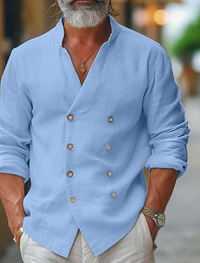 10% Len Męskie Koszula lniana koszula Czarny Biały Rumiany róż Długi rękaw Jednokolorowe Stójka Ulica Codzienny Odzież