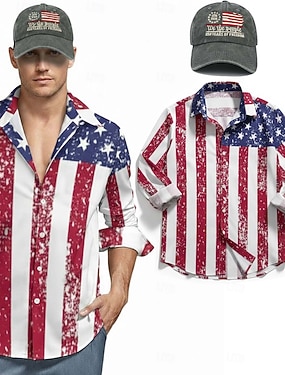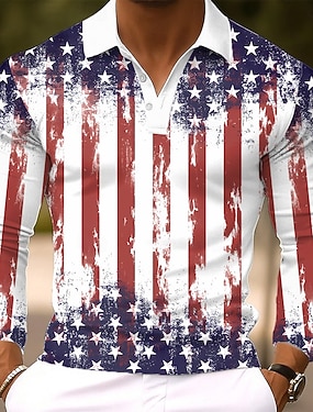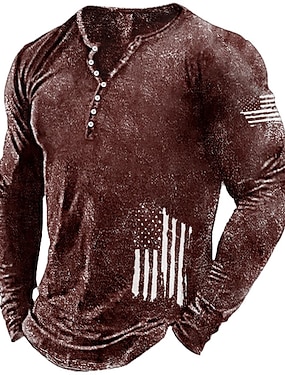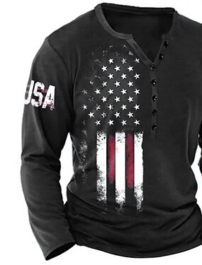 4 lipca 2026 250. Dzień Pamięci Męski Graficzny T-shirt Henley z długim rękawem z nadrukiem 3D Flaga Narodowa Casual Dzienny