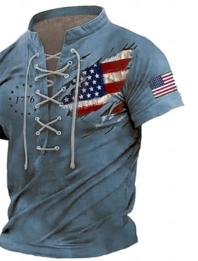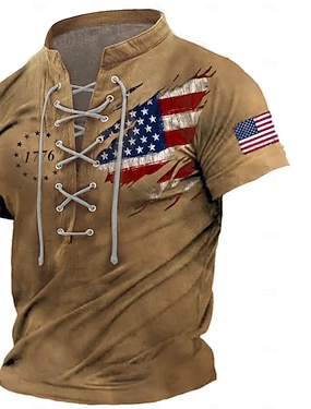 4 lipca 2026 250. Dzień Pamięci Męski Vintage Retro Projektant T-Shirt z 3D Printem z Flagą USA Henley Krótki Rękaw Na Co Dzień Na Ulicy