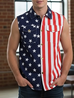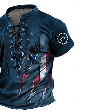 4 lipca 2026 250. rocznica Dnia Pamięci Męska Patriotyczna koszulka T-shirt z nadrukiem 3D Flagi USA weteran z wiązaniem z krótkim rękawem na świeżym powietrzu sportowa