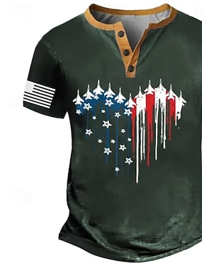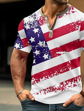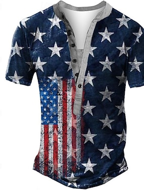 4 lipca 2026 250. Dzień Pamięci męska koszulka Henley z grafiką projektu 3D z amerykańską flagą krótki rękaw casual codzienny sport