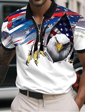 4 lipca 2026 250. Dzień Pamięci Męska Koszulka Patrioty z Drukiem 3D Flagi USA Weterana Sznurowana Krótki Rękaw Casual Sport
