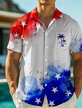 4 lipca 2026 250. rocznica Dnia Pamięci Męska Projektant Patriot 3D Print Henley Koszulka z krótkim rękawem Na co dzień