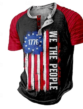 4 lipca 2026 250. rocznica Dnia Pamięci Męski 3D Drukowanie Flagi USA Henley Koszulka z Krótkim Rękawem Sporty na Zewnątrz Ulica